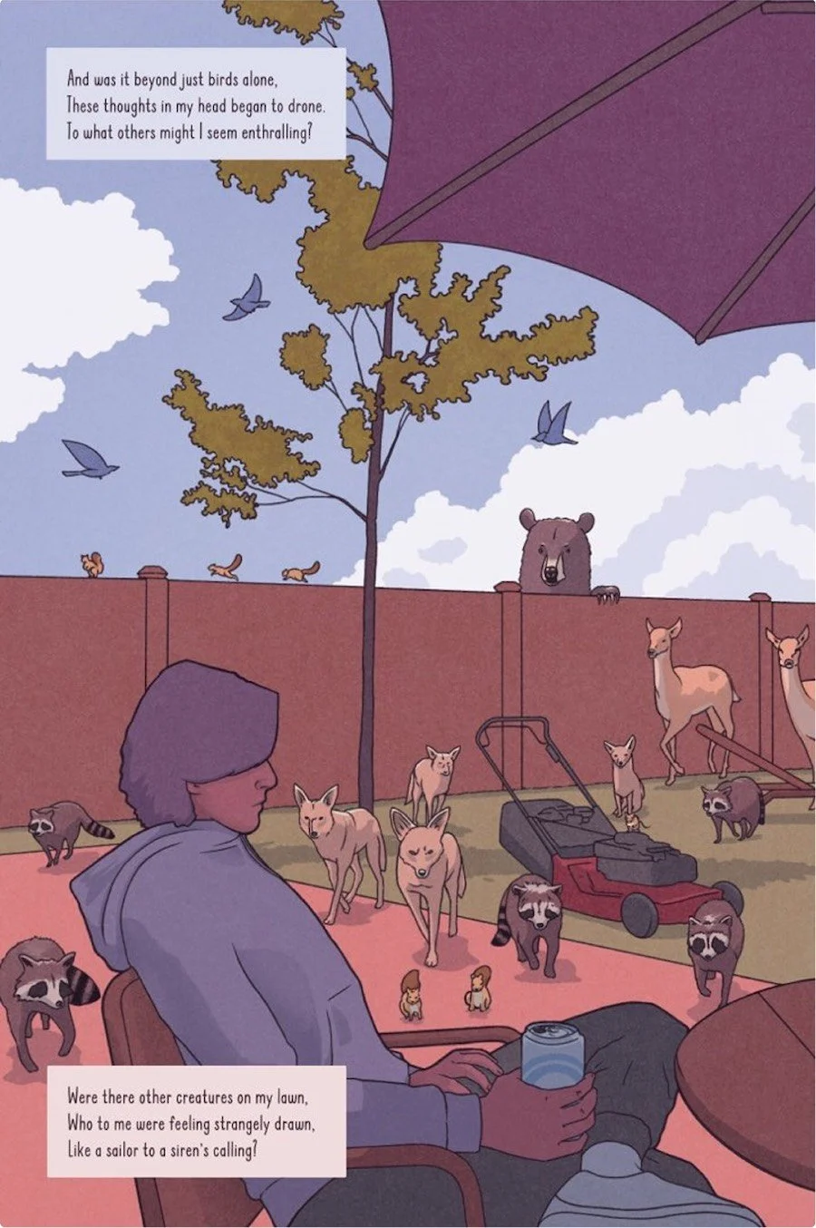 A Jay Goes Nuts is a narrative poem about a guy who lets his imagination run wild when a Stellar’s jay takes an unexplained interest in him. I collaborated with my brother Dave, who created the illustrations, for the second time on what we’ve been calling a graphic narrative poem, or comic.